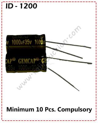/ {ID – 1200} Gemcap 1000uF/35V. 105°C Capacitor Size-10×20 10 Pcs. Price =
