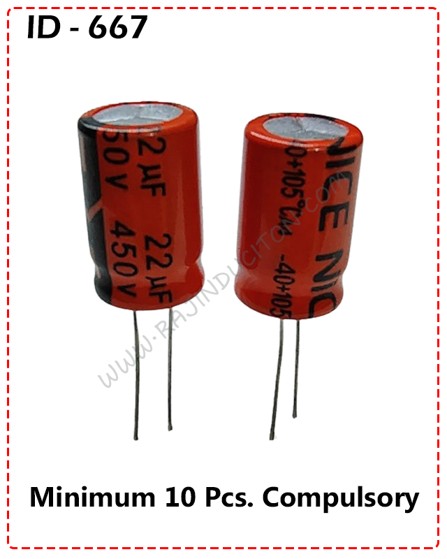 / {ID – 667} – NICE 22uf 450V (Size – 13×21 105C) 10 Pcs. Price =