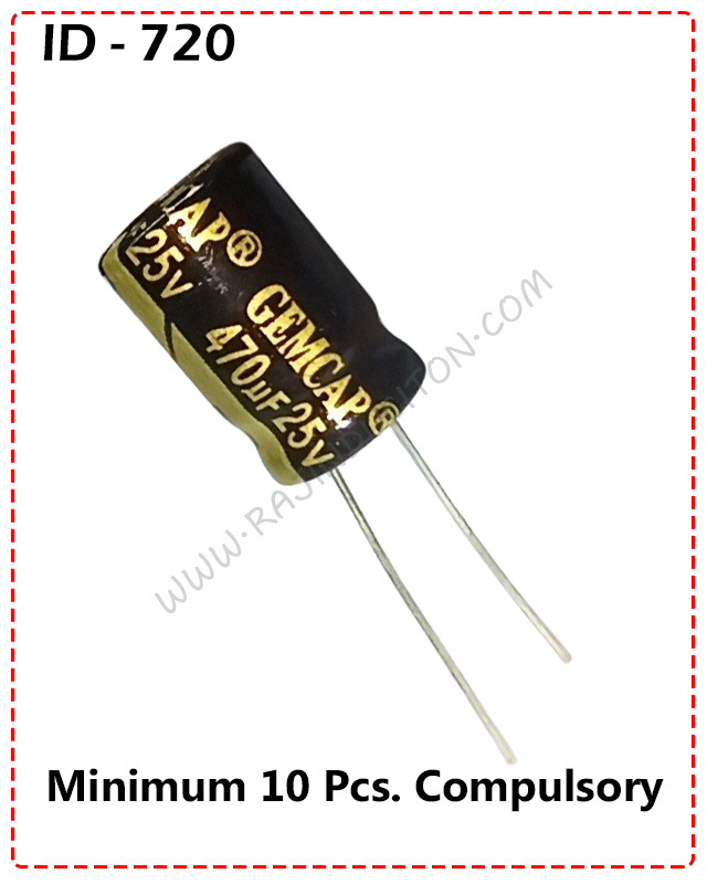 {ID - 720} - 470uF 25V Capacitor (Size 8x12) 10 Pcs. Price = quantity